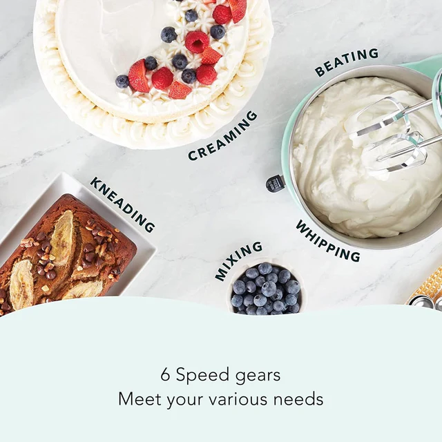 L’Impastatrice Elettrica Multifunzione 5 impostazioni variabili di velocità, che ti consentono di adattarla a qualsiasi tipo di preparazione. Che tu stia mescolando, impastando o frustando, questa impastatrice si adatta facilmente a tutte le tue necessità.