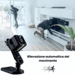 Grazie al sensore di movimento integrato, la Mini Cam Sicurezza si attiva automaticamente ogni volta che rileva movimenti, registrando solo quando necessario e passando in modalità standby al termine dell’attività. Questa funzione è perfetta per la videosorveglianza, aiutandoti a monitorare l’ambiente senza dover gestire video inutili.