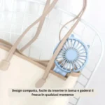 Questo mini ventilatore è incredibilmente compatto e leggero, perfetto per essere riposto in tasca o nella borsa. Puoi portarlo con te durante le tue attività quotidiane, assicurandoti di avere sempre una brezza fresca a portata di mano. È l’accessorio ideale per chi è sempre in movimento e non vuole rinunciare al comfort.