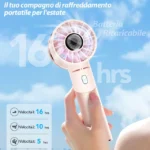 Questo mini ventilatore è stato progettato per essere leggero e facilmente trasportabile. Il suo design compatto lo rende ideale per chi cerca un ventilatore che non occupi troppo spazio ma che offra comunque un’ottima performance di raffreddamento.