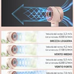 Questo mini ventilatore è stato progettato per essere leggero e facilmente trasportabile. Il suo design compatto lo rende ideale per chi cerca un ventilatore che non occupi troppo spazio ma che offra comunque un’ottima performance di raffreddamento.