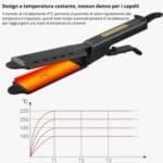 Distribuzione uniforme del calore per uno styling setoso e senza danni.