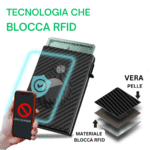 Dotato di tecnologia RFID, protegge i tuoi dati sensibili da letture non autorizzate, mantenendo al sicuro carte di credito e bancomat da ogni tentativo di clonazione o furto d’identità. Il suo design compatto e raffinato, realizzato con materiali di alta qualità, ti permette di portarlo sempre con te senza rinunciare allo stile. Grazie ai suoi numerosi scomparti e alla capacità fino a 10 tessere, hai sempre tutto in ordine e a portata di mano. Il sistema in alluminio anti-caduta e il meccanismo di estrazione rapida ti garantiscono praticità e comfort d’uso, mentre la funzione di localizzazione tramite tracker (non incluso) ti offre un ulteriore livello di sicurezza, permettendoti di ritrovarlo facilmente in caso di smarrimento.